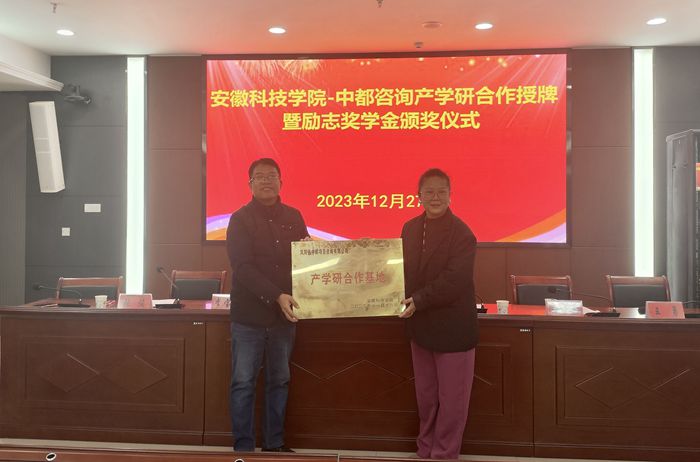 会上,杜小明为凤阳县中都项目咨询有限公司授予“爱体育平台产学研合作基地”牌匾;刘芳宣读“中都咨询优秀奖学金”获奖名单并颁发了荣誉证书;金融工程专业221班刘海洋同学代表获奖学生发言。