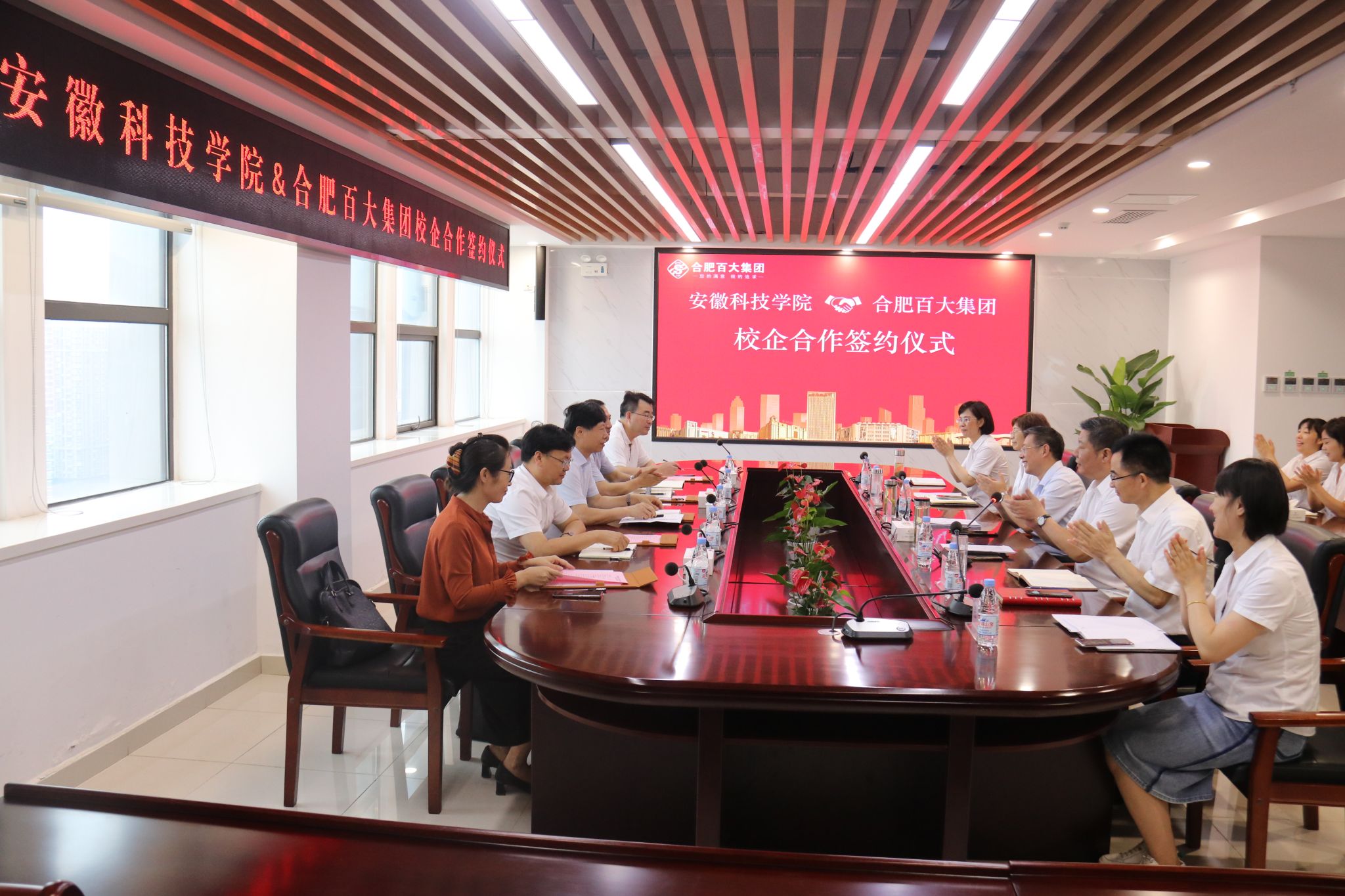 财经学院院长郝世绵和百大集团党委委员、工会主席裴文娟代表双方签署了《合肥百大集团 爱体育平台战略合作协议》;双方观看了合肥百大集团宣传片,并围绕智力共用、人才共育、项目共研、平台共享等进行深入交流。