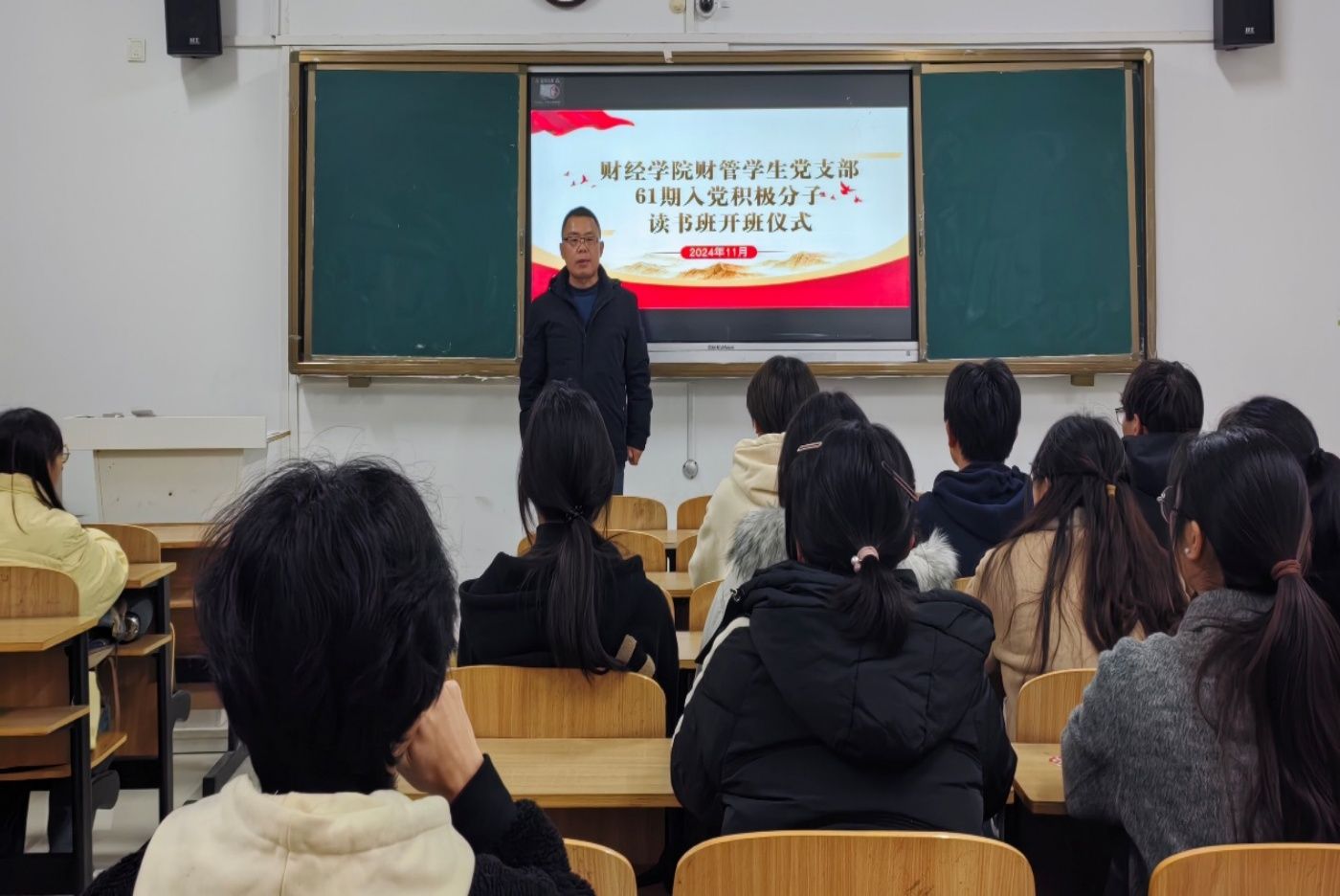 2024年11月至今,学院按照“学思想、强党性、重实践、建新功”总要求,打造“才菁”读书班,历时100余天,迄今已开展4讲。学院党委副书记、纪委书记耿广汉在开班仪式上以“为何读书”破题,推荐50余本涵盖党史、经济、哲学类书籍,号召学员“以书铸魂、以学促行”。财管学生党支部书记陆文斌领学《市场经济的中国之路》,引导入党积极分子将个人理想融入民族复兴伟业。“读书不仅是思想的洗礼,更是党性的锤炼。”活动至今,学员通过集中研读、座谈交流,深刻领悟“忠诚、奋斗、敬畏”的使命担当,筑牢信仰之基。