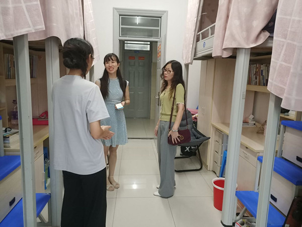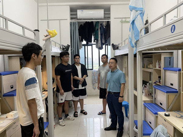 走访中,学院领导与返校学生进行了亲切交流,了解学生暑假学习生活情况,提醒学生要给父母报平安,返校后切实做好疫情防控常态化工作,进一步提高安全防范意识;注意用电安全、交通安全、个人财产安全等安全事项;鼓励学生们新学期要珍惜青春时光,合理规划大学生活,提高自律与独立生活的能力,互助友爱,勤奋学习,学好专业课,为考研提前做准备,同时提醒学生们要注意身体健康,加强锻炼,努力改善宿舍卫生。