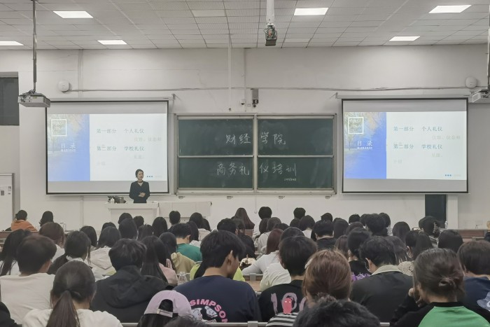 为进一步提升学生礼仪修养,彰显大学生文明风采,营造高尚、文明、和谐的校园礼仪环境,4月25日,财经学院邀请《现代商务礼仪》课程教师钱新悦于致知楼B111教室开展大学生商务礼仪培训。22级、23级全体学生干部,学生会全体成员参加会议。