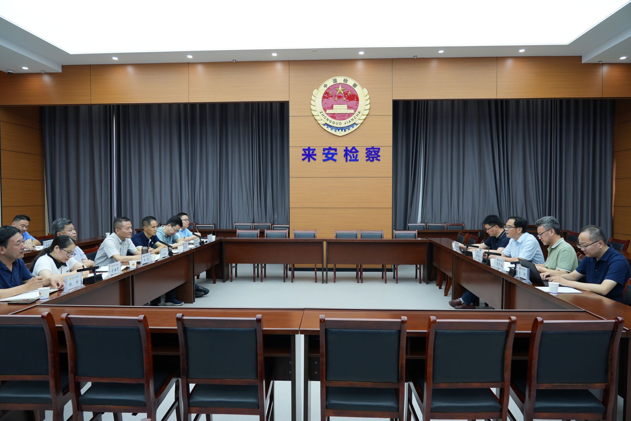 当天下午,李晓东一行在来安县人民检察院党组书记、检察长朱全胜、党组副书记丁自华、副检察长王俊和李继庆、党组成员马海青、政治部主任张成志、专职委员徐彬的陪同下,参观了检察官驿站、12309检察服务中心、办案工作区、案件听证室、新媒体工作室、检委会会议室和体能训练中心、技能训练中心,听取工作人员对相关检察工作业务流程的介绍。
