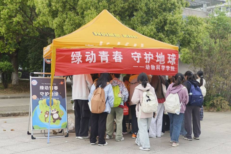 4月22日,动物科学学院学生会在凤阳校区西区广场举办“绿动青春,守护地球”世界地球日主题活动,通过趣味科普、绿色互动等形式倡导低碳环保理念,吸引众多学生参与。