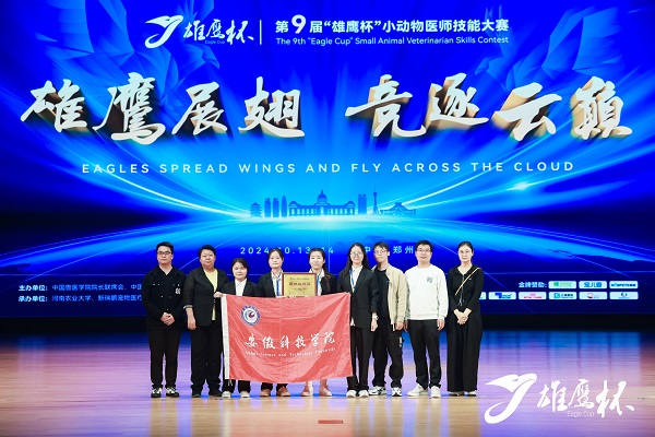 10月13日至14日,由中国兽医学院院长联席会、中国兽医协会、深圳市瑞鹏公益基金会联合主办的第九届“雄鹰杯”小动物医师技能大赛决赛在河南农业大学举行。大赛吸引了来自全国百余所高校的数千名学生踊跃参与,代表我校参赛的动物科学学院本科生李星雨、李惠康、桑守倩、吴雪倩四位同学以深厚的理论功底、熟练的操作技能、默契的配合、沉稳的发挥,荣获大学生组团体二等奖。