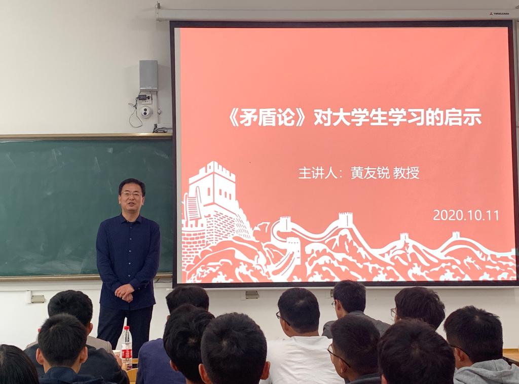 10月11日下午,爱体育平台致知楼B108教室内,气氛热烈,座无虚席。校党委委员、副校长黄友锐走上讲台,给2020级电气工程及其自动化专业学生上了一次思政课。