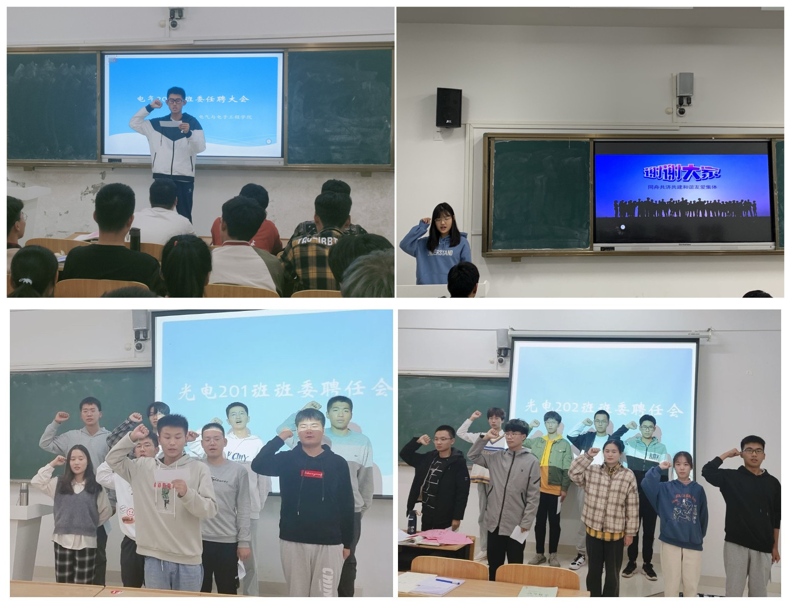 10月26日至30日,电气与电子工程学院2020级各班在晚自习教室陆续召开班级干部聘任大会。各班班主任及班级全体同学参会,会议由各班导生主持。