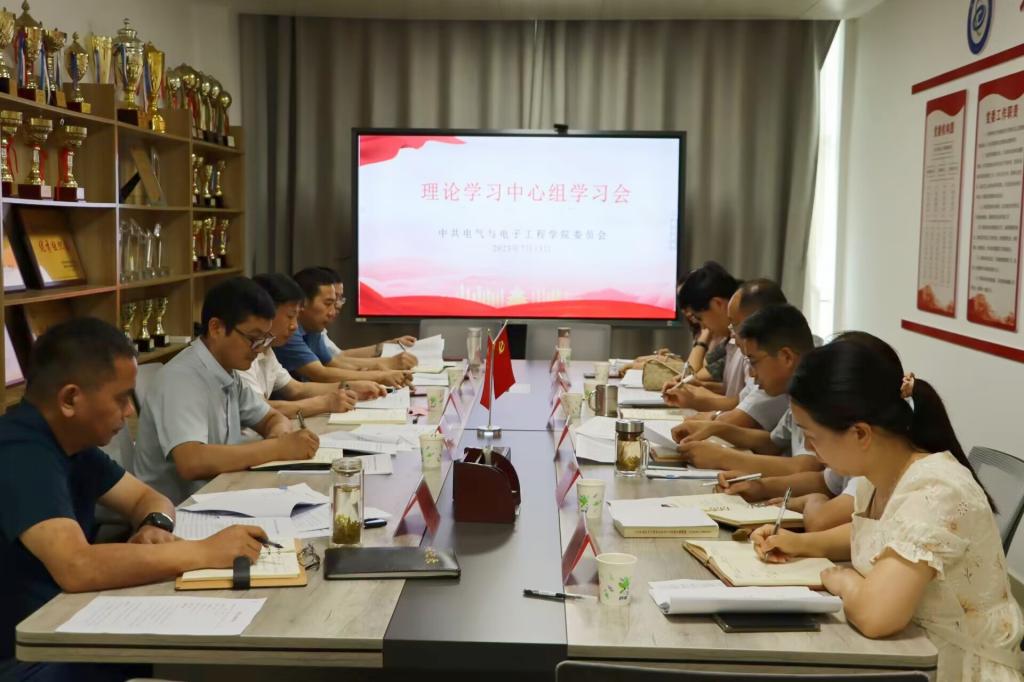 7月13日下午,电气与电子工程学院召开党委理论学习中心组学习会,校党委书记时伟出席会议并作指导讲话。党委委员、党委宣传部(统战部)部长何永勇,校团委副书记李刚列席旁听了会议。学院理论学习中心组成员参加会议,学习会由学院党委书记骆海邦主持。