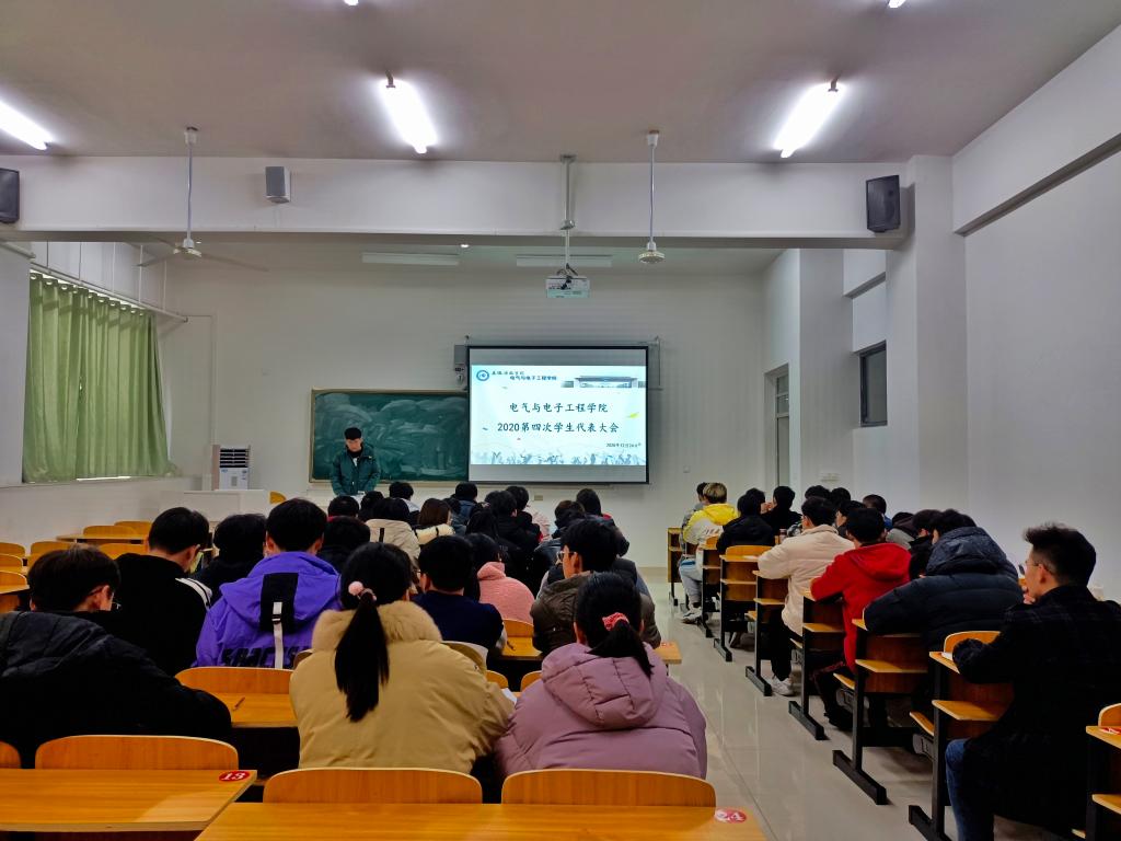 12月24日,电气与电子工程学院于致知楼B106召开第四次学生代表大会。本次大会主要选举出第四届学生会委员及出席爱体育平台2020年学生代表大会代表的成员。电气与电子工程学院党委秘书、团委副书记王延丽,院学生会主席黄世伟及学生会全体成员一同参加本次会议。