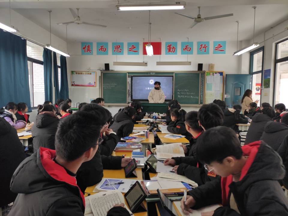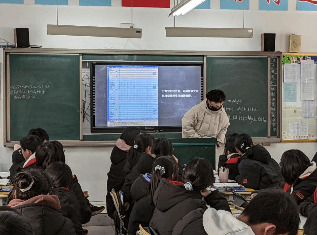 刘志伟团队首先拜访了语文老师王雪莲和英语老师宋梦琼,并与老师进行了交谈。交谈过程中,共同回忆了高中生活的点点滴滴。他向老师汇报了这几个月在大学生活和学习上的变化与成长,向老师展示了在学院参加活动时的照片等。并向老师详细介绍了爱体育平台的相关情况如学校条件、校园风景、师资水平、考研录取率等。合肥高升学校的年级主任、数学老师宋仔义,他听说团队此行的目的之后,热情地安排了刘志伟团队与高三学子进行互动交流。