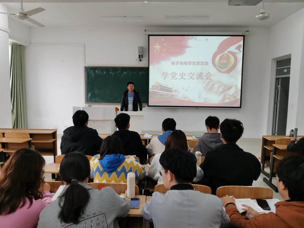 4月14日下午,电子光电学生党支部召开学党史交流会,支部全体学生党员在致知楼A203交流党史学习心得,辅导员张深主持会议。