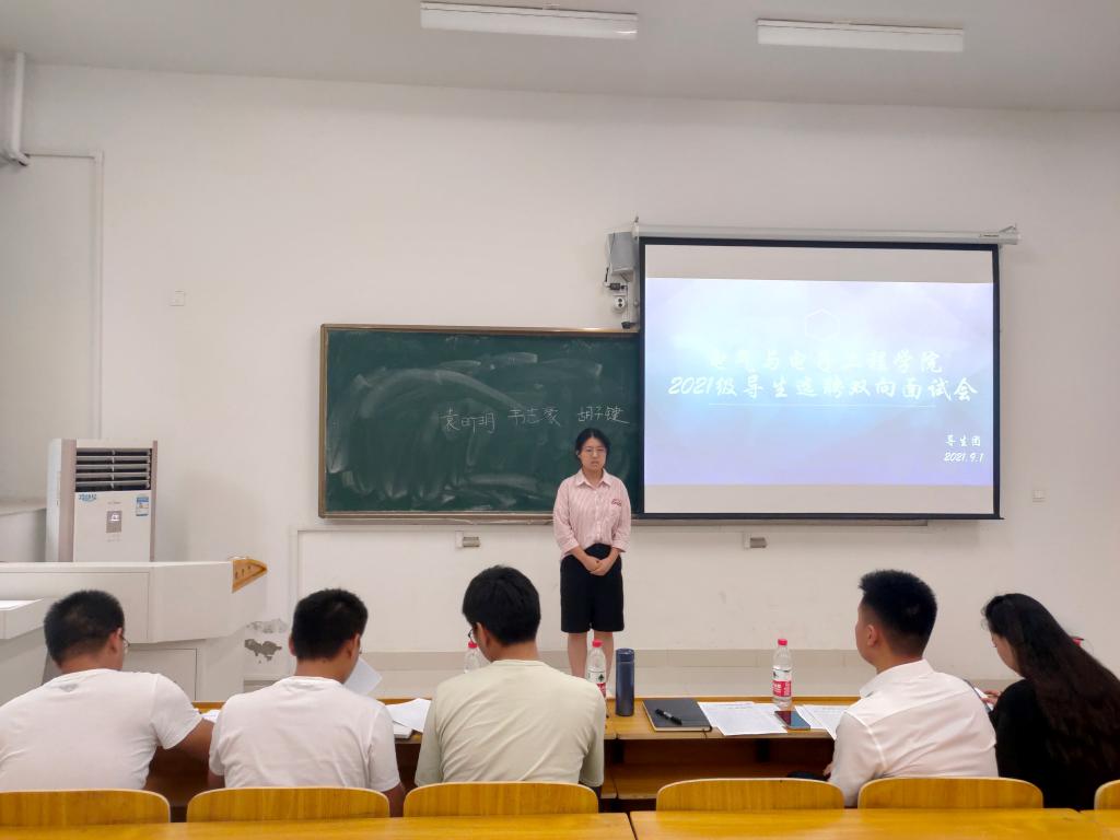 为有效开展新生的思想教育和管理工作,9月7日,电气与电子工程学院举行新生导生双选会,电气学院党委副书记尚磊,党政办公室主任王延丽,团委书记张成孜,辅导员陈更强、张深、洪乃羽、于宏亮担任本次的面试官,对选聘导生进行评分指导。