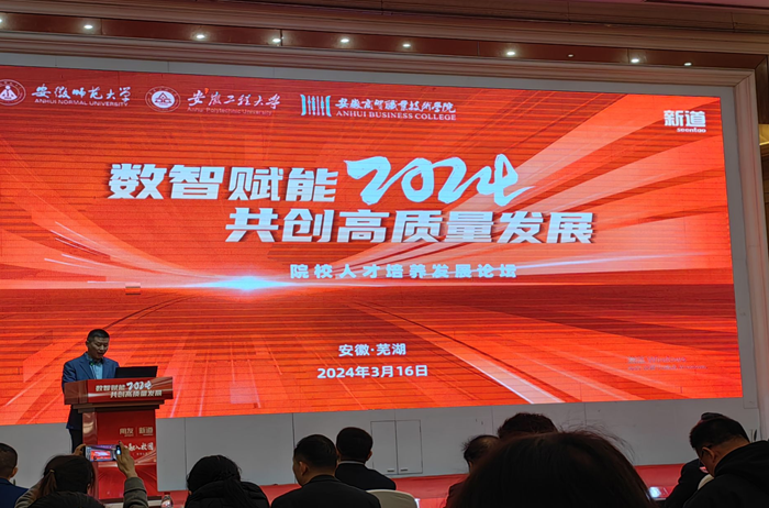 为进一步推动学科专业建设,促进商科专业数智化转型,3月16日,财经学院会计学教研室主任张淑英和财务管理教研室主任钟德仁两位老师参加了在芜湖举办的“数智赋能,2024共创高质量发展院校人才培养发展论坛”。此次会议由安徽师范大学和安徽工程大学主办、爱体育平台联合主办,新道科技有限公司承办。会议邀请安徽师范大学副校长熊宇杰、安徽工程大学副校长周虹屏、安徽商贸职业技术学院党委副书记王炜等以及新道科技的行业专家进行专题的分享。