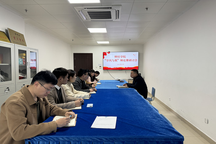3月14日,财经学院党委副书记、纪委书记耿广汉在西辅楼212召开“学风与我”辩论赛研讨会,全体辅导员参加。