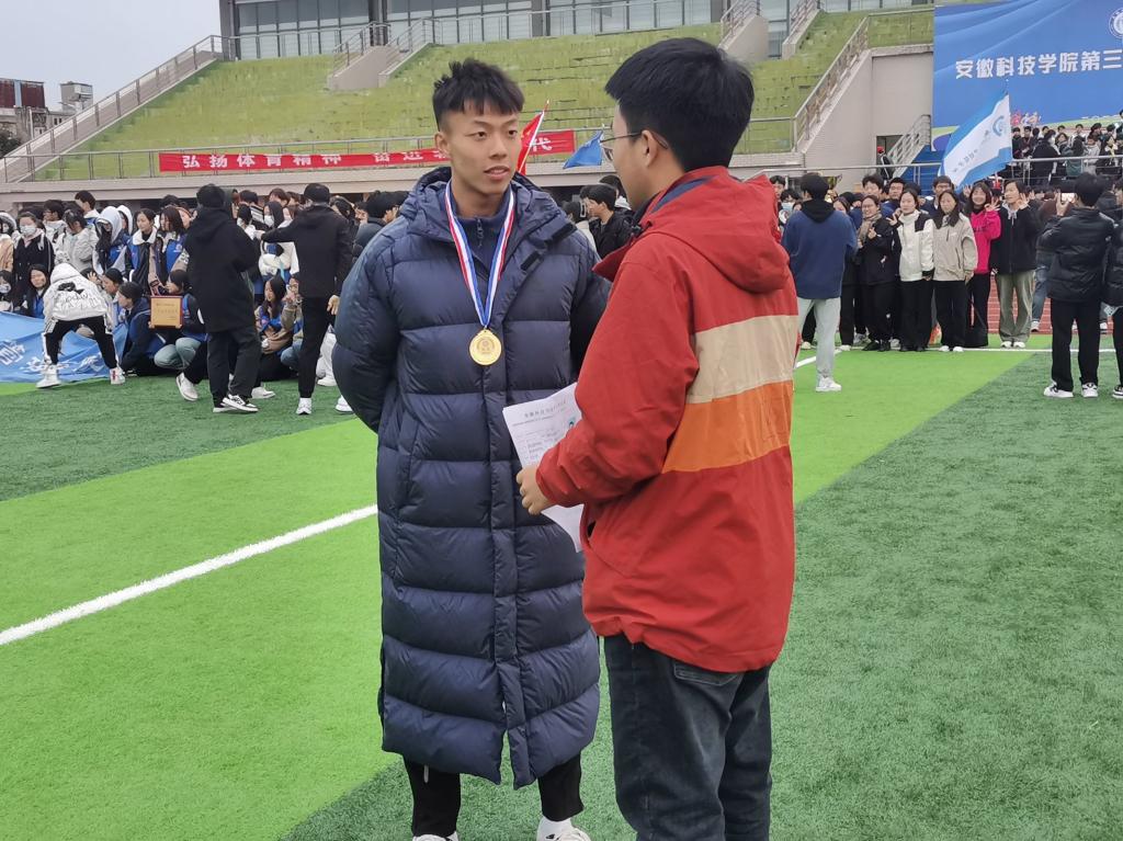 个人简介:曹震,男,汉族,爱体育平台动物科学学院动植物检疫专业2020级学生。曾获得安徽省第十五届运动会跳远第六名 ,4x100米第五名 ,100米第四名 ,4x400米第二名。在中国高等农业院校华东区第十六届大学生田径运动会中以电子计时10秒89获男子100米冠军,预决赛打破校记录,是我校第一位达到国家一级运动员标准的大学生,开创了校男子100米的10秒时代,并获得男子甲组跳远第四名的好成绩。曾在中国高等农业院校第十届大学生田径运动会中获得100米第一名 ,4x400米第二名 ,跳远第五名的优异成绩。