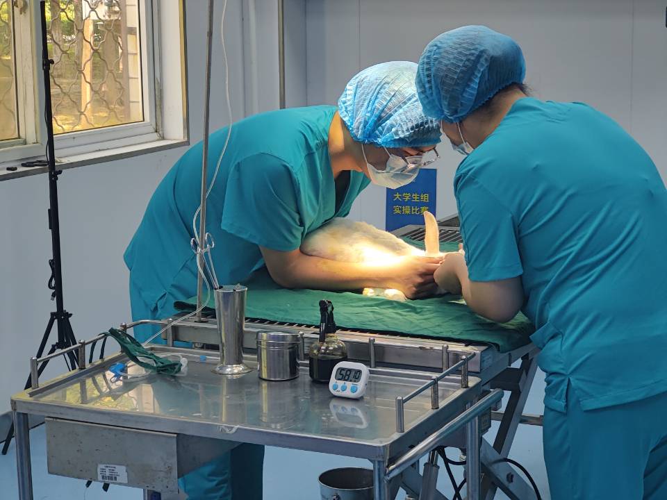 5月26日,第七届“雄鹰杯”小动物医师技能大赛在爱体育平台附属兽医院手术室完成理论和实验操作考核,其中理论考核采用线上专业考核系统,随机抽取试卷进行作答;实验操作考核包括兔胃切开术、血涂片制作和徒手打结。