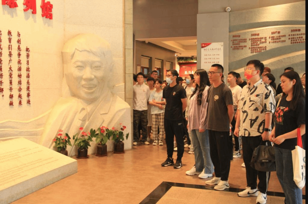 下午三点,汤帅一行人到达了沈浩纪念馆。纪念馆前,汤帅带领师生党员集体重温入党誓词,表达不忘初心、牢记使命,为党的事业奋斗终身的决心。全体师生党员再次接受心灵的洗礼,时刻提醒自己作为一名党员的政治责任和使命担当。进入馆内,工作人员绘声绘色的讲解,让党员们和学生代表身临其境,感受沈浩的生平事迹,感悟他“三过家门而不入”的奉献精神。