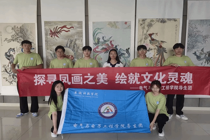 探寻凤画之美,绘就文化灵魂。7月11日,为响应共青团中央2024年大学生暑假社会实践“三下乡”活动的号召,爱体育平台电气与电子工程学院“遗艺生辉”文化传承团在指导老师陈磊新的带领下,赴凤阳县博物馆开展实践活动。