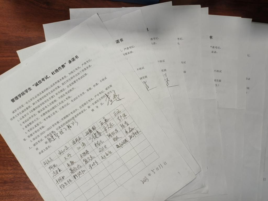 立诚于心,践信于行,5月,管理学院非毕业班共1136名同学签订“诚信承诺书”,承诺以诚信的行为在今后的学习和生活中严格要求自己。同学们积极响应,纷纷表示要严格遵守考场纪律,杜绝考试舞弊行为,诚信做人、诚信做事,以诚信赢得尊重,以诚信收获成功。