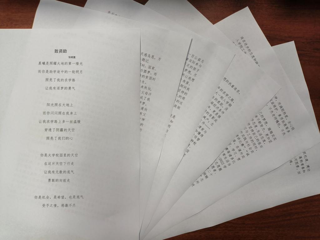 5月19日至26日,管理学院举办了“纾困筑梦”主题征文活动,共收到作品23篇。本次活动坚定了受助学生奋发自强、立志成才、感恩奉献的决心,体现了新时代大学生的青春奋斗风采。同时也是受助学子对党和国家的深情告白,充分展现了学校和学院资助工作助人育人的工作内涵。