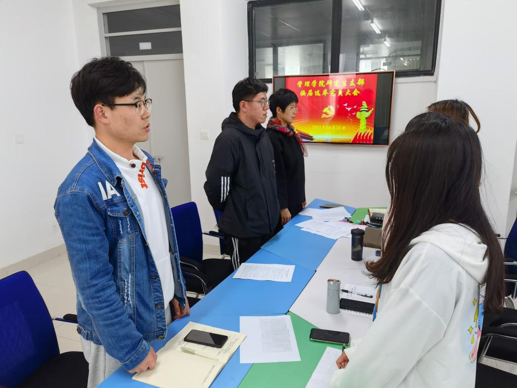 4月21日下午,管理学生党支部于致知楼C201教室组织召开党员大会,开展支部换届选举工作,会议由支部书记李永鹏主持,党委书记丁景良出席会议并做指导讲话。