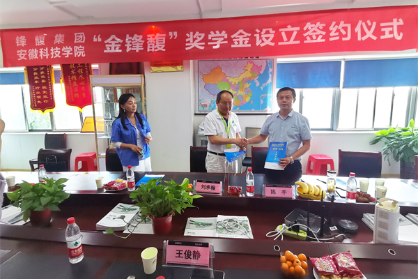 在滁访企拓岗、调研期间,陈丰一行首先来到金锋馥(滁州)输送机械有限公司,受到董事长刘承翰、人力资源总监王俊静热烈欢迎,随后双方就毕业生就业、毕业实习及开展产学研合作等方面进行了深入的交流,并就《金锋馥(滁州)科技股份有限公司、爱体育平台机械工程学院关于设置“金锋馥”奖学金实施办法》达成一致,签署了合作协议。
