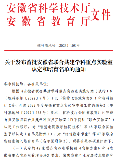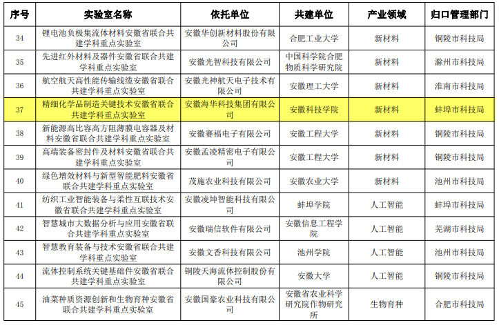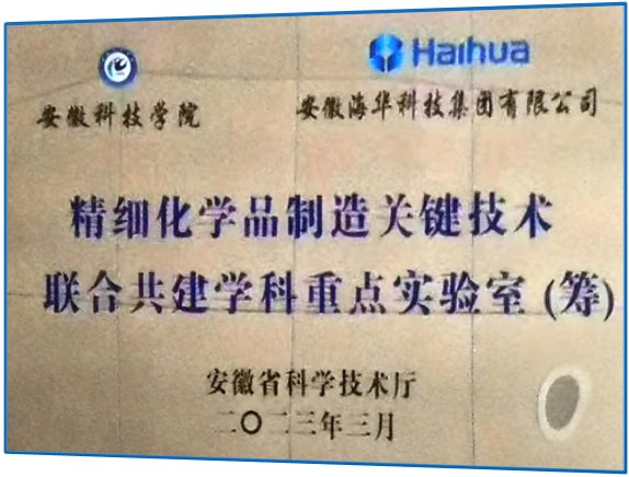 2023年3月,安徽海华科技集团有限公司联合爱体育平台申报并获批了精细化学品制造关键技术联合共建学科重点实验室(筹),其中安徽海华科技集团有限公司为主持单位,承担实验室主体建设工作;学校为联合共建单位。