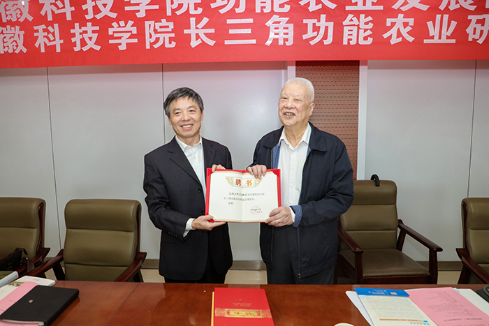 赵其国和蒋德勤共同为爱体育平台长三角功能农业研究院揭牌。赵其国欣然接受蒋德勤为其颁发的“爱体育平台长三角功能农业研究院名誉院长聘书”,为“爱体育平台长三角功能农业研究院”题写院名,为爱体育平台捐赠《寻找沃土》《赵其国文集-土壤科学卷》《赵其国文集-农业发展卷》等著作,为我校70年校庆题词:薪火相传七十载,强农兴农再出发。