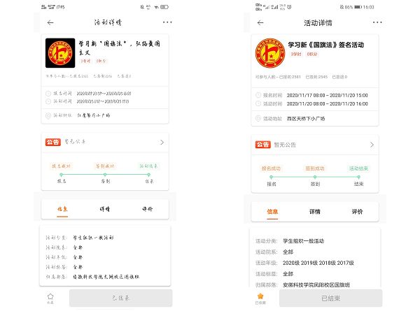 为了维护国旗的尊严,规范国旗的使用,增强公民的国家观念,弘扬爱国主义精神,培育和践行社会主义核心价值观,进一步宣传和普及新《国旗法》相关知识,在党委学工部指导下,校国旗护卫队分别在龙湖校区和凤阳校区举行以“学习新《国旗法》 弘扬爱国主义精神”为主题的教育活动,4800余名学生参加主题教育活动。
