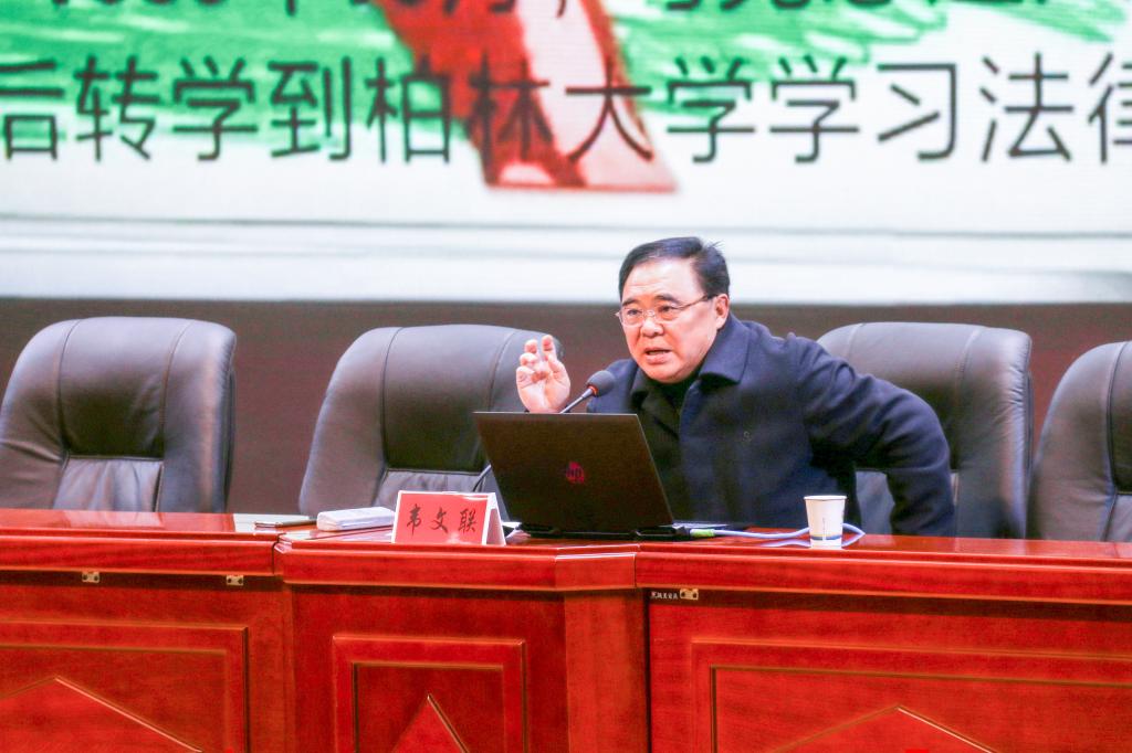 12月16日下午,2020年“青马工程”大学生骨干培训暨第六期团校于龙湖校区综合信息活动中心东辅楼二楼报告厅举行,校党委副书记韦文联应邀作为青马学员做题为《三个为什么》的专题报告。各学院团委书记、两校区600余名青马学院线上线下共同聆听报告。报告会由校团委副书记张聪主持。