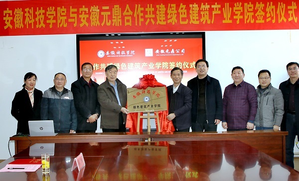 李震对我校建立“绿色建筑产业学院”表示祝贺,对安徽元鼎大力支持我校发展表示感谢。他指出,新工科背景下,产业学院已成为深化产教融合的重要抓手;双方应从人才培养、专业共建、课程共担、师资共享,到课题申报、技术研发、实习实训等方面深度谋划,推进校企合作育人新模式,不断拓宽社会服务平台。他希望双方勠力同心,促使产业学院建设发展的美好愿景落地生根,开花结果,共同把绿色建筑产业学院打造成为校企深度合作的典范。