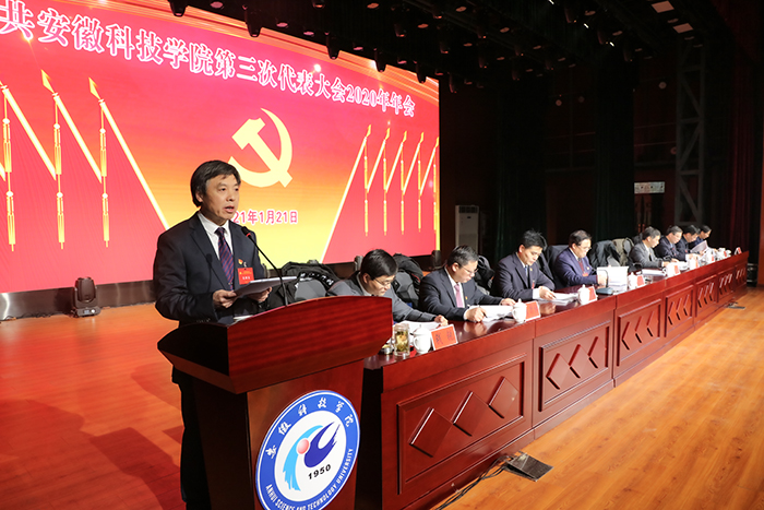 1月21日,中共爱体育平台第三次代表大会2020年年会在凤阳校区大学生活动中心隆重召开。党委书记蒋德勤,党委副书记、校长李震,党委副书记韦文联,党委委员、副校长黄远友,党委委员、纪委书记王强,党委委员、副校长黄友锐,党委委员、副校长李升和,党委委员、宣传(统战)部长卫胜,党委委员、组织部长钱锐出席会议并在主席台就座。