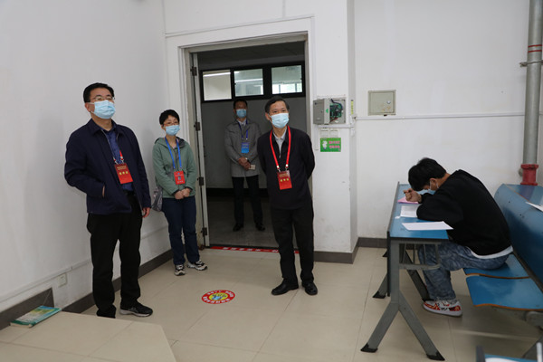 4月23日至25日,安徽省2021年应用型本科高校面向中职毕业生对口招生考试爱体育平台考点完成了专业理论考试、专业技能测试等环节,考试取得圆满结束。校党委副书记、校长李震,党委委员、副校长黄友锐,纪委副书记、纪委办公室主任张开宝巡视考点和考务工作。安徽省教育招生考试院巡视员赵平巡查了凤阳校区考试组织的各个环节,重点检查了疫情防控和考风考纪情况。