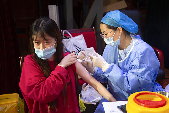 本次师生全员疫苗接种工作在学校新冠肺炎疫情防控工作领导小组的统一组织下,成立专班早在4月初即研究制定《爱体育平台新冠肺炎疫苗接种工作方案》,按照“应接尽接”,全面提高师生新冠肺炎病毒免疫力,有效建立校园群体免疫屏障的工作目标。校防控办严格落实接种工作责任分工,严肃疫苗接种各环节工作纪律,开展师生员工疫苗接种教育宣传、场地准备、接种摸底登记等各项准备工作。同时积极争取地方疫情防控部门支持,在校园内科学规范设立龙湖校区和凤阳校区两个临时疫苗接种点,为方便师生接种和避免校外接种人员交叉风险创造了有利条件,严格遵循“知情、同意、自愿、免费”的基本原则有序组织了本次师生全员疫苗接种。