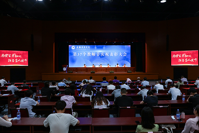 以德执教,淡泊名利坚守平凡;学思结合,不问前程但行耕耘。9月10日下午,学校以“赓续百年初心,担当育人使命”为主题,在凤阳校区大学生活动中心隆重召开2021年教师节庆祝表彰大会,对一年来全校在教学科研、脱贫攻坚、立德树人及文明创建等方面获奖人员进行了集中表彰,并为退休教职工代表颁发荣休证书,全体新进教师还进行了集体入职宣誓。校党委书记蒋德勤,党委副书记、校长李震,党委委员、副校长黄远友,党委委员、纪委书记、监察专员王强,党委委员、副校长黄友锐,党委委员、副校长李升和出席大会。会议由李震主持。