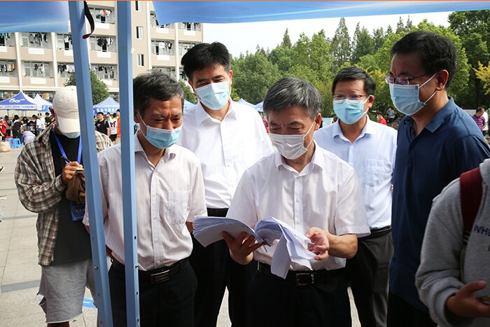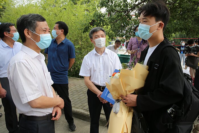 带着对新生的亲切关怀,上午9时,校党委书记蒋德勤,党委副书记、校长李震,党委委员、纪委书记、监察专员王强,党委委员、副校长黄友锐,党委委员、副校长李升和等来到凤阳校区迎新报到现场,详细了解迎新组织工作和新生报到情况,现场查看各项疫情防控举措,并亲切慰问参与迎新工作的师生。