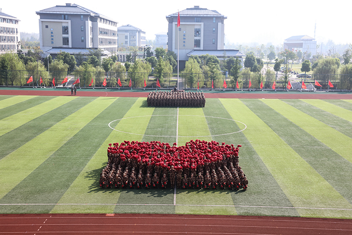 鲜艳的旗帜迎风招展,翠绿的迷彩方队整齐划一,响亮的口号声此起彼伏。经过两周的艰苦训练,二十二个连队,1956名参训学员身着戎装、目光坚定、步履铿锵,列阵行进到主席台前接受检阅。五步拳、军体拳、格斗术等特色方阵陆续演出,整齐肃穆的方阵、气势磅礴的口号、刚劲有力的摆臂,彰显出新一代安科学子朝气蓬勃的精神面貌,英姿飒爽的威武军姿,豪情万丈的昂扬斗志。新生们用励精图治、报效祖国的赤子情怀热烈庆贺党的百年华诞。