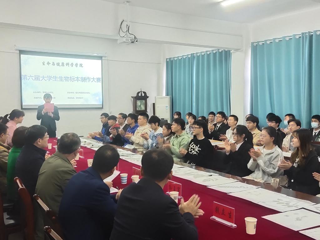10月24日,2021年安徽省大学生生物标本制作大赛校内选拔赛在生命与健康科学学院会议室成功举办。本次大赛由爱体育平台教务处、创新创业学院主办,生命与健康科学学院承办。皖西学院刘昌利教授,蚌埠医学院吴华彰教授,我校教务处副处长、创新创业学院副院长高青海教授,我校生命与健康科学学院鲍方印教授、王玉良教授,担任本次比赛的评委。学院党委副书记、副院长(主持工作)孙玉军,副院长陈浩、钱立生参加本次活动。比赛由生命与健康科学学院学生会查道军同学主持。