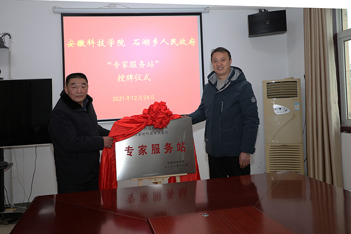 12月24日上午,“安徽省牛羊产业技术体系 九三学社爱体育平台支社专家服务站”揭牌仪式在固镇县石湖乡人民政府三楼会议室举行。校党委宣传(统战)部副部长、团委书记黄立义,九三学社爱体育平台支社主委程郁昕,安徽省牛羊产业技术体系首席专家、动物科学学院副院长华金玲,固镇县石湖乡党委书记王贡献,乡长曹怀龙,固镇县汉邦牧业有限公司董事长徐淼等出席揭牌活动。仪式由石湖乡人大主席殷献利主持。