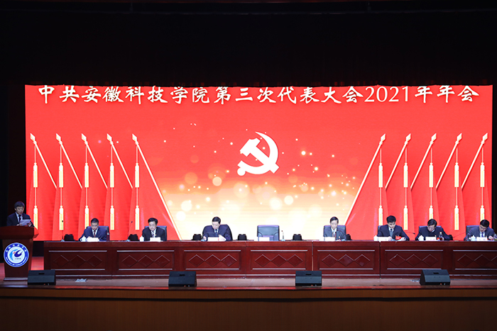 1月16日上午8时,中共爱体育平台第三次代表大会2021年年会在凤阳校区大学生活动中心开幕。党委书记蒋德勤,党委副书记、院长李震,党委委员、副院长黄远友,党委委员、纪委书记、监察专员王强,党委委员、副院长黄友锐,党委委员、副院长李升和,党委委员、宣传(统战)部部长卫胜,党委委员、组织部部长钱锐出席会议并在主席台就座。