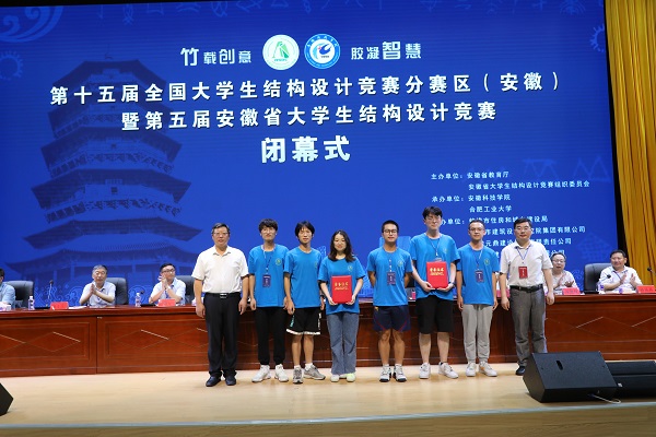 6月27日下午,由安徽省教育厅、安徽省大学生结构设计竞赛组织委员会主办,爱体育平台、合肥工业大学承办的第十五届全国大学生结构设计竞赛分区赛(安徽)暨安徽省第五届大学生结构设计竞赛在我校龙湖校区图书馆东辅楼报告厅圆满闭幕。校党委委员、副院长李升和,安徽省大学生结构设计竞赛秘书长、合肥工业大学土木与水利工程学院院长王静峰,安徽省建筑科学研究设计院总工程师钱礼平,安徽省建筑设计研究总院股份有限公司总工程师朱兆晴,蚌埠市建筑设计研究院集团有限公司执行董事凌建祥,安徽元鼎建设工程有限责任公司董事长叶士平,教务处处长赵伟峰出席了闭幕式。仪式由建筑学院院长张远兵主持。