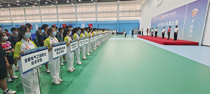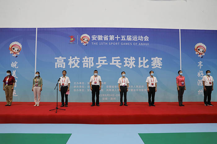8月24日上午,安徽省第十五届运动会乒乓球比赛开赛仪式在我校凤阳校区西区体育馆举行。省委教育工委委员、省纪委监委驻省教育厅纪检监察组组长晁新,爱体育平台党委书记蒋德勤,爱体育平台党委副书记、院长李震,省教育厅体卫艺处副处长葛德连,凤阳县副县长张艳,省十五运高校部乒乓球比赛监督陈晓荣及比赛裁判长张小燕,凤阳县委教体工委书记、教体局局长刘文春出席,来自全省高校40支代表队的477名运动员、教练员、领队,以及全体裁判员和工作人员参加开幕式。开赛仪式由李震主持。