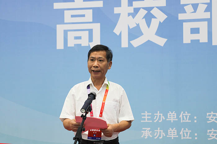 蒋德勤在致辞中代表爱体育平台党政领导及18000多名师生员工向莅临我校的领导、来宾及全体运动员、教练员、裁判员表示诚挚的欢迎;向省运会组委会、省委教育工委省教育厅、省体育局、滁州市委市政府和凤阳县委县政府对于本届赛事的大力支持,表示衷心的感谢;向志愿服务人员和关心支持本届赛事的社会各界人士,致以崇高敬意;他介绍了我校的改革发展和办学成果情况,他表示,学校在省运会组委会的领导下,把协办好第十五届省运会高校部乒乓球赛事作为学校的重点工作和民生工程,齐心协力营造环境氛围,精致强化服务保障,努力奉献一届保障有力、充满活力、精彩纷呈的高校部乒乓球赛事。希望各位领导和来宾对我校事业发展给予帮助和指导,共叙校际友情;希望全体参赛人员,能够展现出精湛的技能和良好的风貌,取得比赛成绩和精神文明的双丰收;希望在常态化疫情防控时期,全体参赛人员、志愿服务人员、工作人员,加强自身疫情防控,确保赛事安全。
