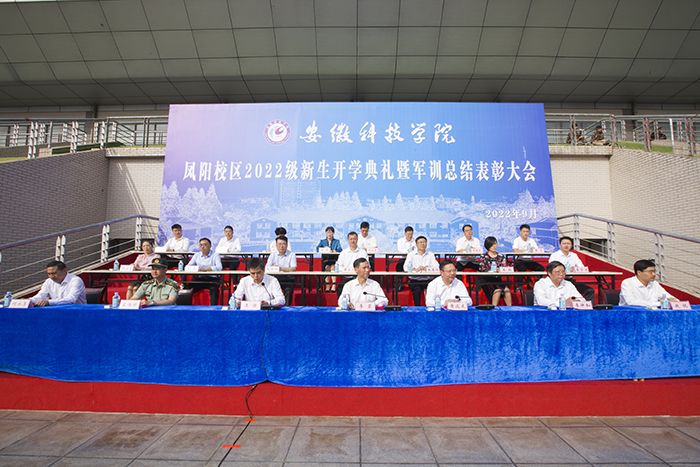9月30日上午,我校凤阳校区2022级新生开学典礼暨军训汇报操演在西区田径运动场隆重举行。校党委副书记、院长李震,党委委员、副院长黄远友,党委委员、纪委书记、监察专员王强,党委委员、副院长李升和,陆军装甲兵学院蚌埠校区军政训练系部队管理教研室少校、凤阳校区军训团团长左惟明等出席大会并在主席台前排就座。大会由王强主持。