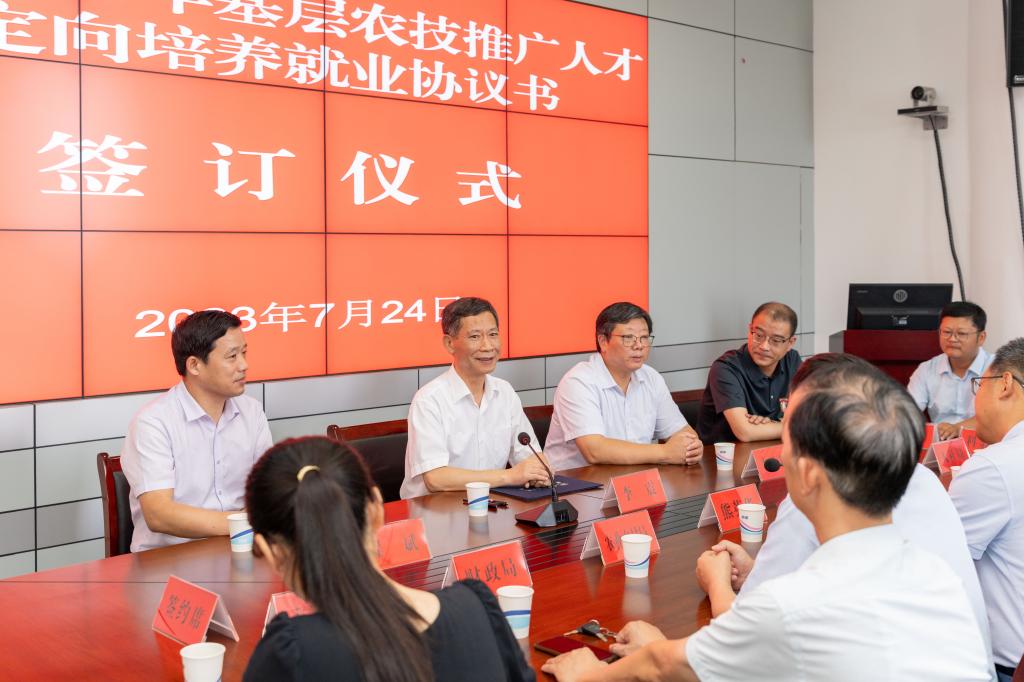 7月24日,校党委副书记、院长李震,校党委委员、副院长李升和一行赴马鞍山市和县参加2023年和县基层农技推广人才定向培养就业协议签约仪式,并为我校2023年录取新生现场签发录取通知书。