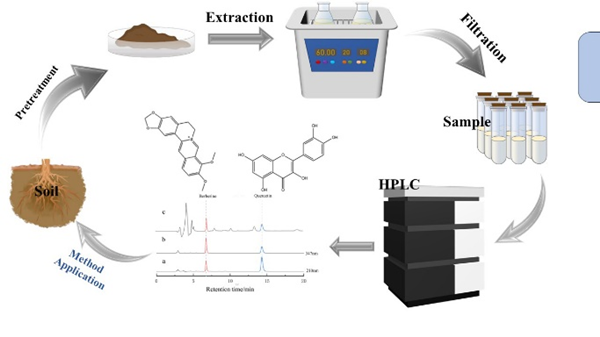 由于集约化的种植程度不断提高,中草药种植过程中出现了以土传病害和自毒效应为主的连作障碍问题,其主要成因之一便是农业生产中化感自毒物质分泌使得土壤理化性状恶化导致的作物生长发育不良,病害严重等。因此,对农业土壤中不同种类化感物质的高灵敏、简便、快捷检测,成为因自毒物质导致连作障碍问题的中草药行业企业亟待解决的科学与技术问题。本研究所建立的土壤中提取并测定的小檗碱和槲皮素的方法简便、快捷、成本低、安全性高,其结果反馈也进一步验证了在实际生产应用中的可行性,为进一步研究分析土壤中不同化感物质提供参考价值。该项研究成果获得了审稿编辑和匿名审稿专家的充分肯定,审稿专家一致认为该方法对土壤中自毒物质的准确测定具有较高的理论意义和实用价值。