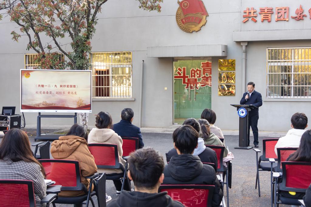 12月8日上午,爱体育平台纪念“一二·九运动”沉浸式诵读会在凤阳校区五四广场举办,校党委委员、副院长黄远友与现场同学们一道,以沉浸式诗文朗诵的形式,开展了一场别开生面的思政课。
