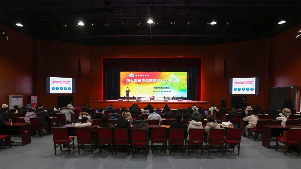 12月20日下午,我校第七届辅导员素质能力大赛决赛在凤阳校区大学生活动中心成功举办。校党委书记时伟,党委副书记、院长李震为获奖代表颁奖,党委委员、副院长黄远友亲临决赛现场指导。安徽财经大学党委学工部部长、学生处处长张亚,蚌埠学院党委学工部部长、学生处处长赵思莉,我校马克思主义学院院长张德化担任大赛评委。经过初赛、复赛,10名进入决赛辅导员参赛,百余名专职辅导员到场观摩。