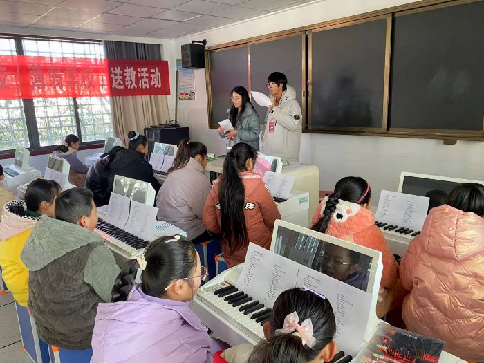 “小朋友们,本学期最后一节课结束啦,咱们下学期再见面啦。”当王钱淼说完这句话,很多孩子的脸上都写满了不舍,甚至还有孩子红了眼眶。音乐就像是打开心门的钥匙,让王钱淼、范君鑫和孩子们之间建立起深厚的感情。范君鑫说参加“周末大篷车”让他更加真切的感受到了音乐温暖人心的力量,更加坚定了助力乡村振兴的使命和自豪感。