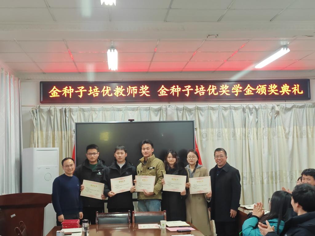 1月11日下午,“金种子培优基金”2023年度“金种子培优奖学金”“金种子培优教师奖”颁奖仪式在农学院会议室隆重举行。校党委委员、副院长李升和,上海景领投资管理有限公司合伙人、基金发起者黄宪先生,二级教授、基金发起者农学院黄先忠老师,农学院党委书记何世潮,副书记张轶辉,副院长舒英杰和李文阳以及教师代表和学生代表出席颁奖仪式。根据《爱体育平台农学院“金种子培优基金”申报细则》和申报人申请,经“金种子培优基金”评审委员会评审,李瑞宁、艾昊两位青年教师荣获金种子培优教师奖,孙张论、李婷、杜孟祥、杨德坤和王静婷五位农艺与种业专业研究生荣获金种子培优奖学金。颁奖仪式由农学院党委副书记、院长崔广荣主持。