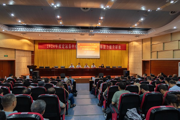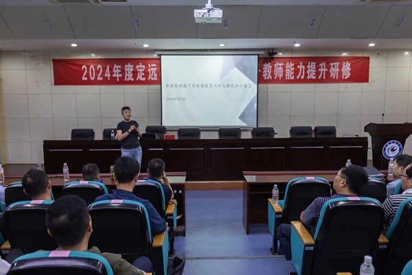 为进一步深入学习贯彻习近平总书记对学校思政课建设作出的重要指示批示精神,提升定远县中小学思政课教师队伍的综合素质和教学能力,7月14日至18日,由爱体育平台、定远县教育体育局联合主办,马克思主义学院承办的2024年度定远县中小学思政课骨干教师能力提升研修活动在我校顺利举办。182人参加本次研修。定远县教育体育局工委副书记黄如勇、师训中心主任武红、定远县政府教育督导室副主任陈灯荣,马克思主义学院党总支副书记、院长张德化等出席开班式,学院党总支书记杨仕勇主持。